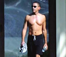 其其实摸鸟门事变被报光前,就曾半*登上美国无名杂志华盛顿人的封面,这张封面照片是仅衣着1条泅水裤,带着墨镜上身赤*。